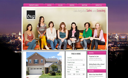 19TrgRealtyInc.com Для агентства недвижимости TGR Realty мы создали дизайн, основанный на интересном сочетании цветов фуксии, сиреневого и черного.