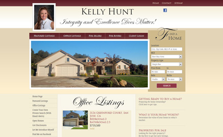 21KellyHunt.com Красивый сайт для риэлтора Келли Хант в цветах песка и бордо с интересными рукописными шрифтами.