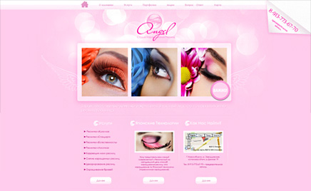 1sib-angel.ru Задача: сделать сайт визитку. Студия наращивания ресниц "Angel". Сайт предлагает очень подробную информацию об услуге, описывает все плюс и минусы процедуры.
