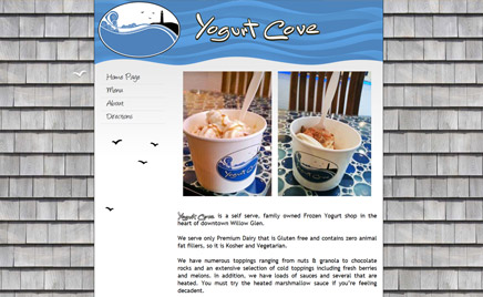 11YogurtCove.com Yogurt Shop – кафе редкого для России формата. Фирменные блюда Yogurt Shop основаны на безглютеновом молоке и молочнокислых продуктах. Дизайн сайта должен был соответствовать внутреннему антуражу кафе.