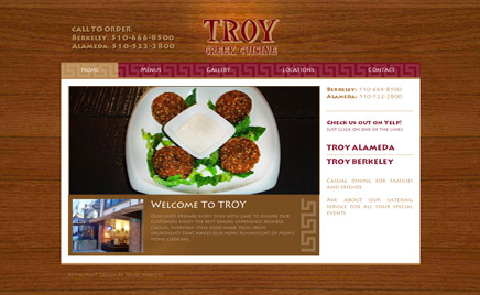 13TroyGreek.com Ресторан греческой кухни Troy Greek (США). Клиент выбрал для дизайна темные теплые древесные тона, соответствующие дизайну самого ресторана.